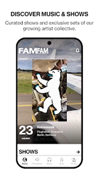 FAMFAM is een Android-applicatie die gebruikers verbindt met zorgvuldig geselecteerde muziekervaringen. Met deze gratis lifestyle-app kun je officiële tickets kopen voor unieke shows, deelnemen aan gastenlijsten, en persoonlijke uitnodigingen ontvangen. De app biedt ook toegang tot beperkte merchandise en exclusieve samenwerkingen met verschillende merken. Bovendien kunnen gebruikers genieten van speciale DJ-sets en opnames die alleen in de app beschikbaar zijn.